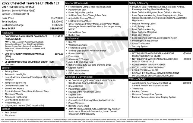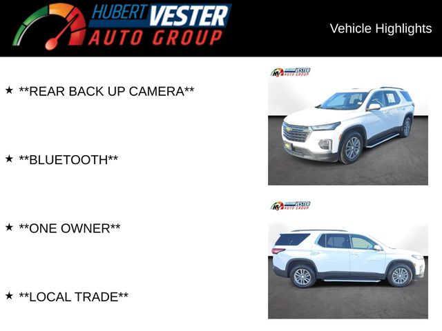 Summit White 2022 Chevrolet Traverse LT 1LT 4D Sport Utility FWD 3.6L V6 SIDI VVT 9-Speed Automatic