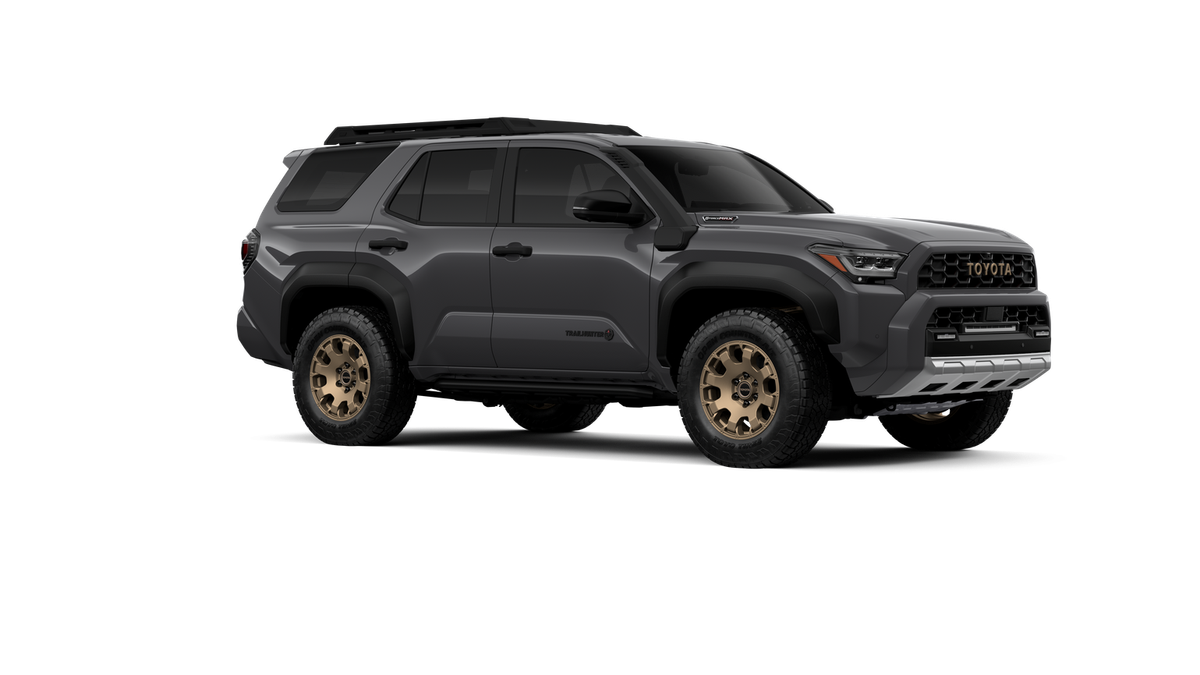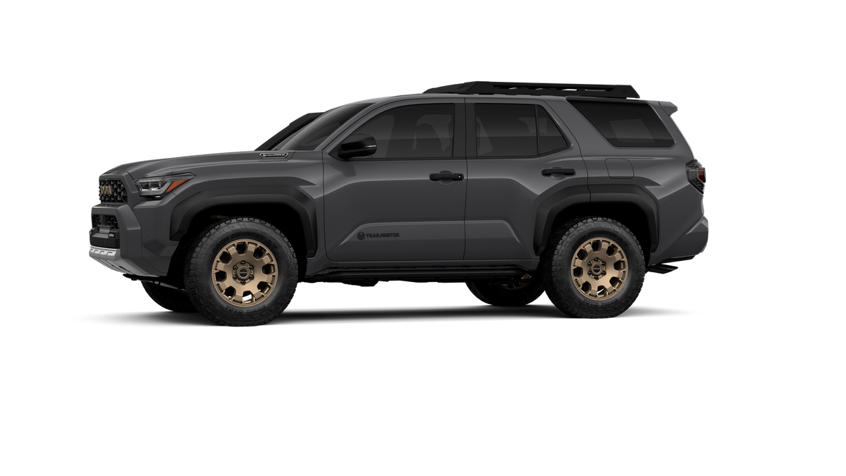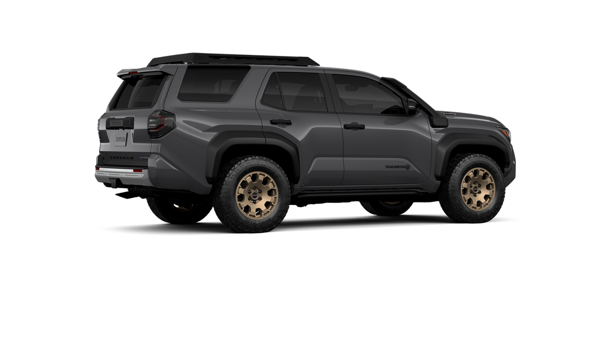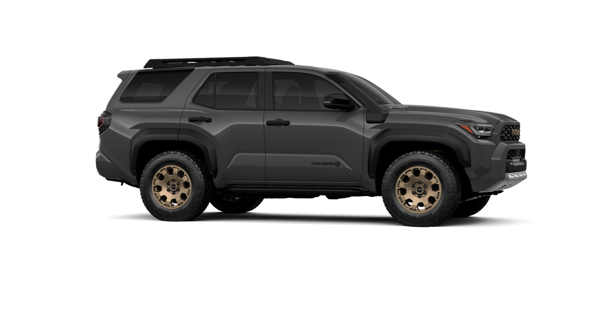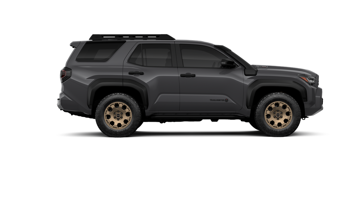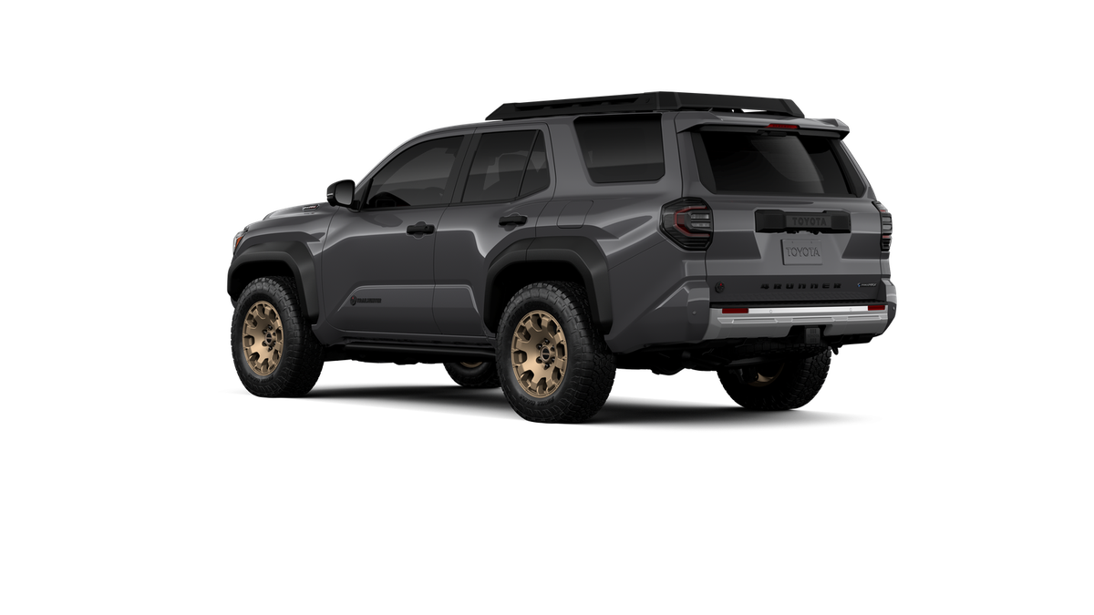 - Black "TOYOTA" heritage grille, door handles and overfenders; color-keyed mirror caps and rear spoiler; black "TRAILHUNTER" and "4RUNNER" badges