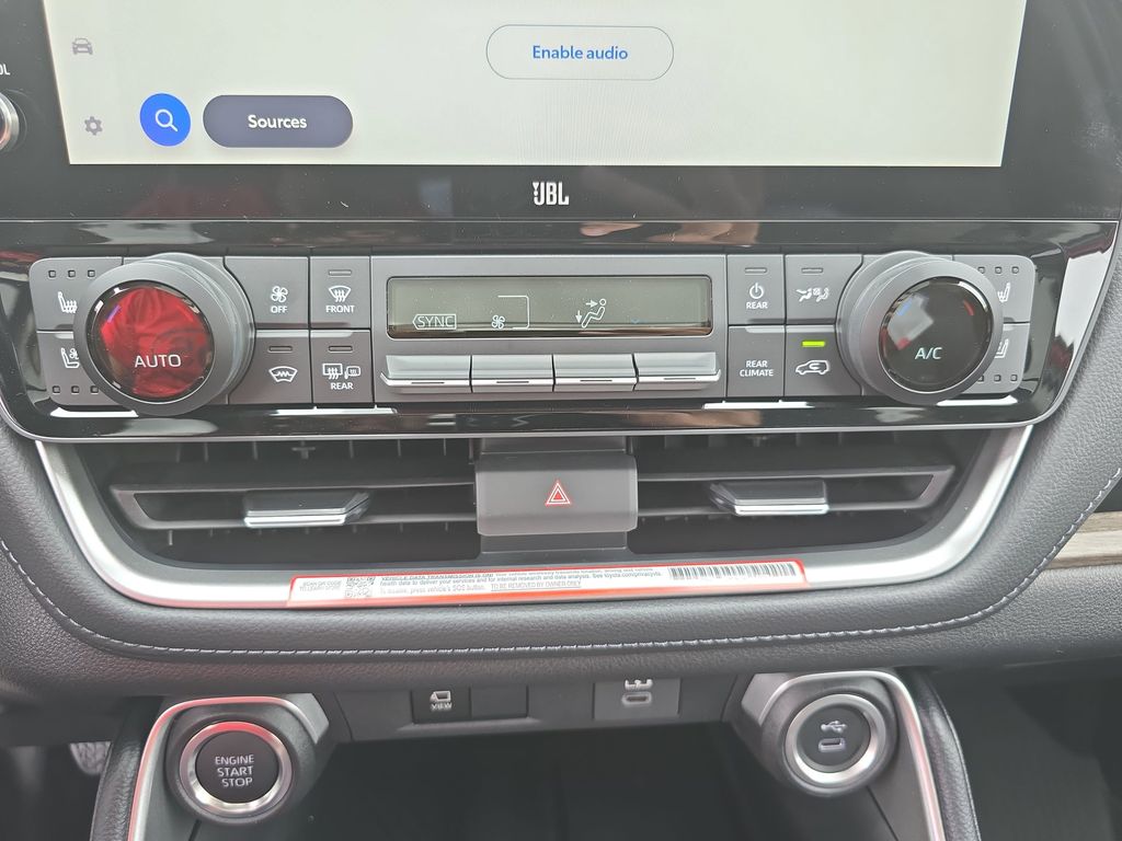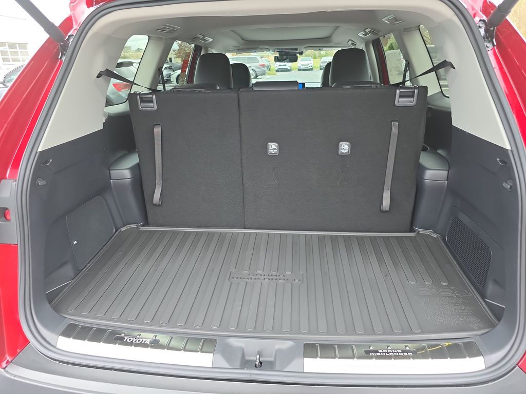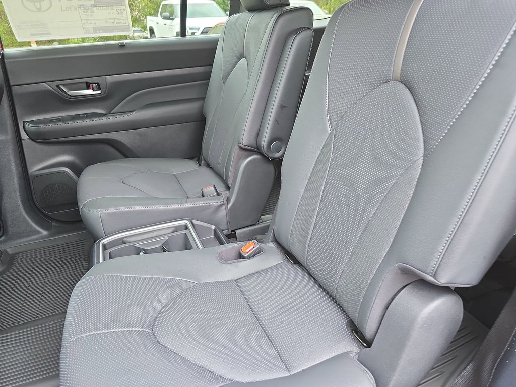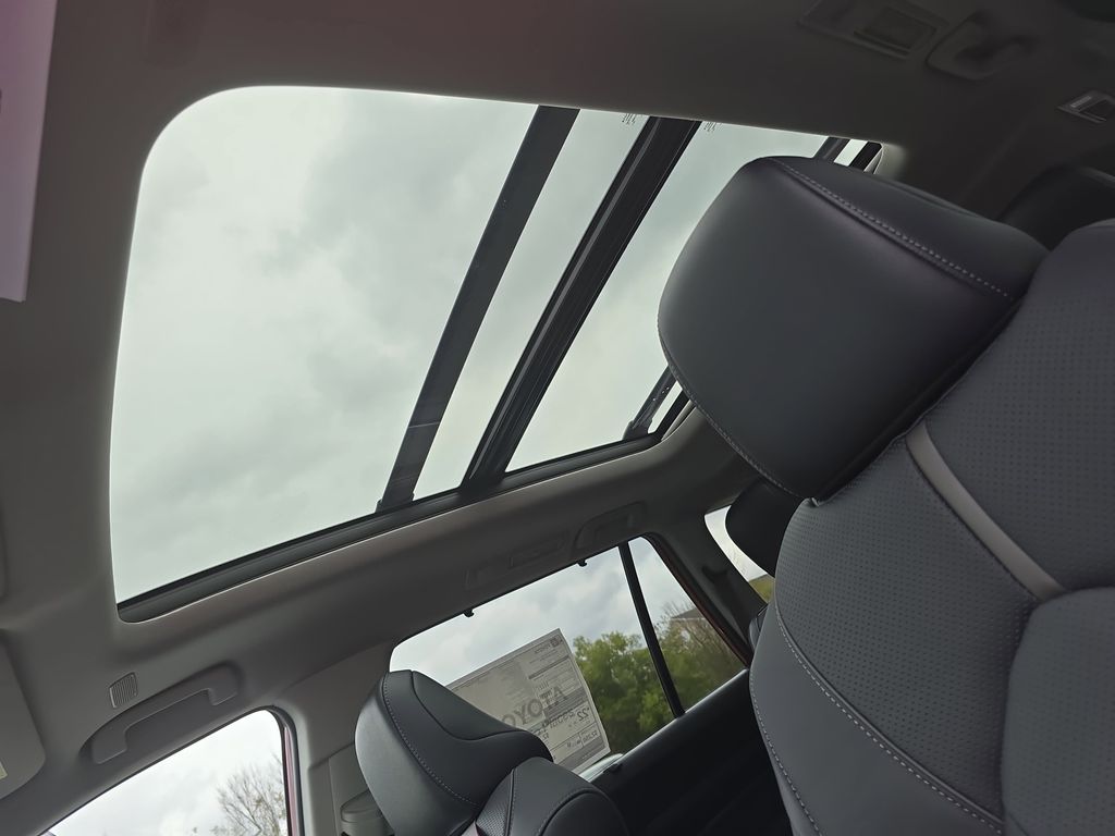 11 Speakers, 3rd row seats: split-bench, 4-Wheel Disc Brakes, ABS brakes, Air Conditioning, Alloy wheels, AM/FM radio: SiriusXM, Apple CarPlay/Android Auto, Auto High-beam Headlights, Auto-dimming Rear-View mirror, Automatic temperature control, Brake assist, Bumpers: body-color, Delay-off headlights, Driver door bin, Driver vanity mirror, Dual front impact airbags, Dual front side impact airbags, Electronic Stability Control, Emergency communication system: Safety Connect (up to 10-year trial subscription), Exterior Parking Camera Rear, Four wheel independent suspension, Front anti-roll bar, Front Bucket Seats, Front Center Armrest, Front dual zone A/C, Front fog lights, Front reading lights, Fully automatic headlights, Garage door transmitter: HomeLink, Heads-Up Display, Heated and Ventilated Front Seats, Heated door mirrors, Heated front seats, Heated rear seats, Heated steering wheel, Illuminated entry, Knee airbag, Leather Seat Trim, Leather Shift Knob, Leather steering wheel, Low tire pressure warning, Memory seat, Navigation system: Drive Connect Cloud Navigation (1-year trial subscription), Occupant sensing airbag, Outside temperature display, Overhead airbag, Overhead console, Panic alarm, Passenger door bin, Passenger vanity mirror, Power door mirrors, Power driver seat, Power Liftgate, Power moonroof, Power passenger seat, Power steering, Power windows, Radio: 12.3" Toyota Audio Multimedia with JBL Audio, Rain sensing wipers, Rear air conditioning, Rear anti-roll bar, Rear reading lights, Rear window defroster, Rear window wiper, Reclining 3rd row seat, Remote keyless entry, Security system, Speed control, Speed-sensing steering, Split folding rear seat, Spoiler, Steering wheel mounted audio controls, Tachometer, Telescoping steering wheel, Tilt steering wheel, Traction control, Trip computer, Turn signal indicator mirrors, Variably intermittent wipers, Ventilated front seats, Ventilated rear seats, Wheels: 20" Silver Multi-Spoke Aluminum.