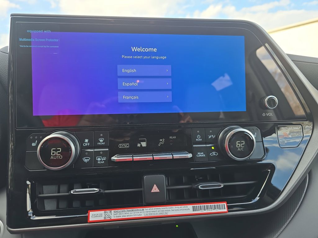 AWD, 3rd row seats: split-bench, 4-Wheel Disc Brakes, 6 Speakers, ABS brakes, Air Conditioning, Alloy wheels, AM/FM radio: SiriusXM, Apple CarPlay/Android Auto, Auto High-beam Headlights, Auto-dimming Rear-View mirror, Automatic temperature control, Brake assist, Bumpers: body-color, Delay-off headlights, Driver door bin, Driver vanity mirror, Dual front impact airbags, Dual front side impact airbags, Electronic Stability Control, Emergency communication system: Safety Connect (up to 10-year trial subscription), Exterior Parking Camera Rear, Four wheel independent suspension, Front anti-roll bar, Front Bucket Seats, Front Center Armrest, Front dual zone A/C, Front fog lights, Front reading lights, Fully automatic headlights, Garage door transmitter: HomeLink, Heated door mirrors, Heated Front Bucket Seats, Heated front seats, Illuminated entry, Knee airbag, Leather Shift Knob, Leather steering wheel, Low tire pressure warning, Occupant sensing airbag, Outside temperature display, Overhead airbag, Overhead console, Panic alarm, Passenger door bin, Passenger vanity mirror, Power door mirrors, Power driver seat, Power Liftgate, Power moonroof, Power passenger seat, Power steering, Power windows, Radio: 8" Toyota Audio Multimedia, Rear air conditioning, Rear anti-roll bar, Rear reading lights, Rear window defroster, Rear window wiper, Reclining 3rd row seat, Remote keyless entry, Security system, SofTex Seat Trim, Speed control, Speed-sensing steering, Split folding rear seat, Spoiler, Steering wheel mounted audio controls, Tachometer, Telescoping steering wheel, Tilt steering wheel, Traction control, Trip computer, Turn signal indicator mirrors, Variably intermittent wipers, Wheels: 18" Machined-Finish Alloy, AWD.