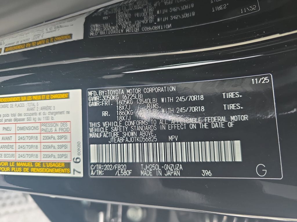 VIN JTEABFAJ0TK056825