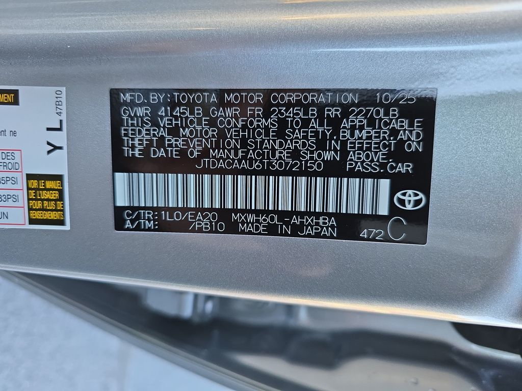 VIN JTDACAAU6T3072150