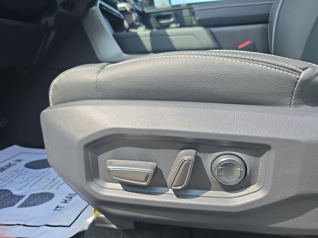- Leather-trimmed seats with contrast stitching; 8-way power-adjustable driver and front passenger seats with power-adjustable lumbar support