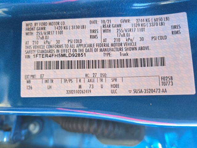 Blue 2021 Ford Ranger XLT 4D Crew Cab 4WD EcoBoost 2.3L I4 GTDi DOHC Turbocharged VCT 10-Speed Automatic