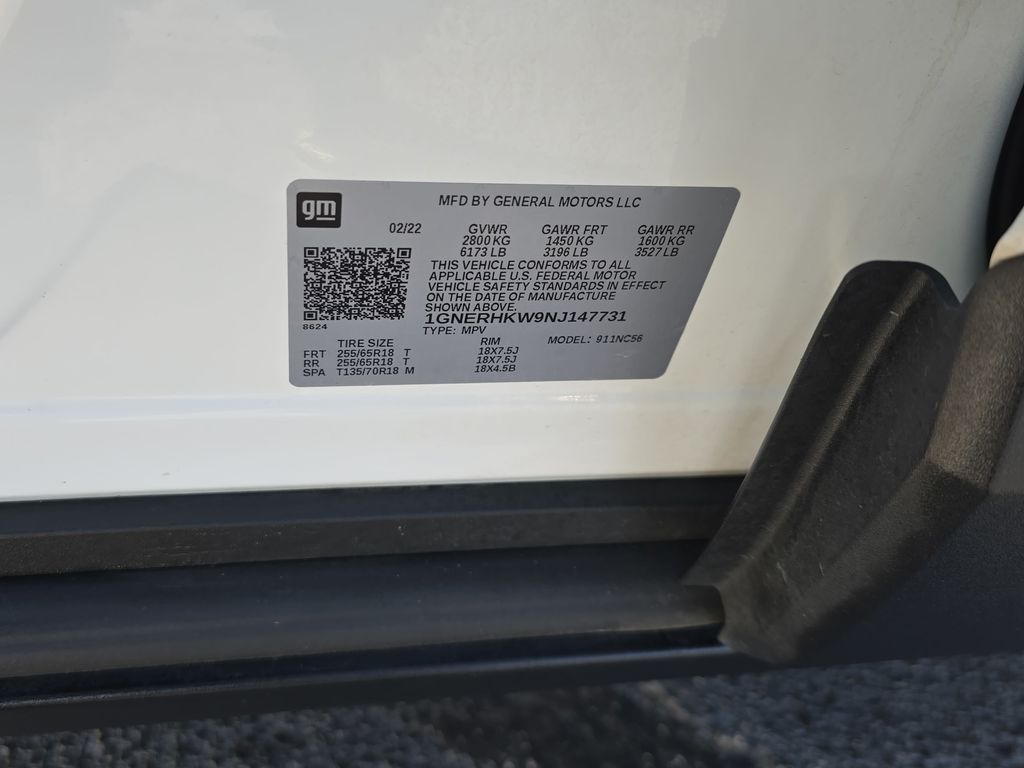 Local Trade!, Leather!, Back Up Camera!!, Bluetooth!!, Vester Certified Pre-Owned Certified, 3.49 Axle Ratio, 3rd row seats: split-bench, 4-Wheel Disc Brakes, 6 Speakers, 6-Speaker Audio System Feature, 6-Way Power Front Passenger Seat, 8-Way Power Driver Seat Adjuster, ABS brakes, Air Conditioning, Alloy wheels, AM/FM radio: SiriusXM with 360L, Apple CarPlay/Android Auto, Auto High-beam Headlights, Automatic temperature control, Black Roof Rails, Brake assist, Bumpers: body-color, Compass, Delay-off headlights, Driver door bin, Driver vanity mirror, Dual front impact airbags, Dual front side impact airbags, Electronic Stability Control, Emergency communication system: OnStar Guidance, Exterior Parking Camera Rear, Four wheel independent suspension, Front anti-roll bar, Front Bucket Seats, Front Center Armrest, Front dual zone A/C, Front License Plate Bracket Mounting Package, Front Passenger 2-Way Power Lumbar, Front reading lights, Fully automatic headlights, Garage door transmitter, Heated door mirrors, Heated Driver & Front Passenger Seats, Heated front seats, Heated Steering Wheel, Heated steering wheel, Illuminated entry, Leather steering wheel, Leather-Appointed Seat Trim, Low tire pressure warning, Not Equipped w/Heated Steering Wheel, Not Equipped w/Rear Park Assist, Occupant sensing airbag, Outside temperature display, Overhead airbag, Overhead console, Panic alarm, Passenger door bin, Passenger vanity mirror, Power door mirrors, Power Driver Lumbar Control, Power driver seat, Power Liftgate, Power passenger seat, Power steering, Power windows, Preferred Equipment Group 3LT, Premium audio system: Chevrolet Infotainment 3 Plus, Radio data system, Radio: Chevrolet Infotainment 3 Plus System, Rear air conditioning, Rear anti-roll bar, Rear Park Assist w/Audible Warning, Rear reading lights, Rear window defroster, Rear window wiper, Remote keyless entry, Roof rack: rails only, Security system, SiriusXM w/360L, Speed control, Speed-sensing steering, Spoiler, Steering wheel mounted audio controls, Tachometer, Telescoping steering wheel, Tilt steering wheel, Traction control, Trip computer, Turn signal indicator mirrors, Variably intermittent wipers, Voltmeter, Wheels: 18" Bright Silver-Painted Aluminum.