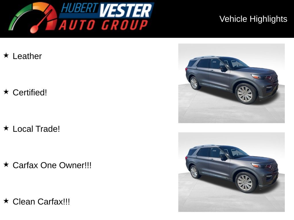 Leather, Certified!, Local Trade!, Carfax One Owner!!!, Clean Carfax!!!, Vester Certified Pre-Owned Certified, 10.1" LCD Capacitive Portrait Touchscreen, 110V/150W AC Power Outlet, 12 Speakers, 1st Row Heated Seats, 2 Additional Speakers, 20" Premium Painted Aluminum Wheels, 3.58 Non-Limited-Slip Rear Axle Ratio, 3rd Row PowerFold Seat, 3rd row seats: bench, 4-Wheel Disc Brakes, 4G LTE Wi-Fi Hotspot Removal Credit, ABS brakes, Air Conditioning, Alloy wheels, AM/FM radio: SiriusXM, Auto High-beam Headlights, Auto Start-Stop Removal, Auto-dimming Rear-View mirror, Automatic temperature control, Brake assist, Bumpers: body-color, Class IV Trailer Tow Package, Compass, Delay-off headlights, Driver door bin, Driver vanity mirror, Dual front impact airbags, Dual front side impact airbags, Electronic Stability Control, Emergency communication system: SYNC 3 911 Assist, Equipment Group 301A, Exterior Parking Camera Rear, FordPass Connect, Four wheel independent suspension, Front anti-roll bar, Front Bucket Seats, Front Center Armrest, Front dual zone A/C, Front fog lights, Front reading lights, Fully automatic headlights, Garage door transmitter, Hands-Free Foot-Activated Liftgate, Hands-Free Liftgate Delete, Heated door mirrors, Heated front seats, Heated rear seats, Heated steering wheel, Illuminated entry, Knee airbag, Leather Heated/Ventilated Captain's Chairs, Leather steering wheel, Limited Convenience Package, Limited Technology Package, Low tire pressure warning, Memory Driver's Seat, Navigation System, Occupant sensing airbag, Outside temperature display, Overhead airbag, Overhead console, Panic alarm, Passenger door bin, Passenger vanity mirror, Power door mirrors, Power driver seat, Power Liftgate, Power passenger seat, Power steering, Power Tilt/Telescoping Steering Column, Power windows, Radio data system, Radio: B&O Sound System by Bang & Olufsen, Rain sensing wipers, Rear air conditioning, Rear anti-roll bar, Rear reading lights, Rear window defroster, Rear window wiper, Remote keyless entry, Roof rack: rails only, Security system, Sideview Mirrors w/Gloss Black Caps, Speed control, Speed-sensing steering, Speed-Sensitive Wipers, Split folding rear seat, Spoiler, Steering wheel mounted audio controls, SYNC 3 Communications & Entertainment System, SYNC 3/Apple CarPlay/Android Auto, Tachometer, Telescoping steering wheel, Tilt steering wheel, Traction control, Trip computer, Twin Panel Moonroof, Variably intermittent wipers, Ventilated front seats, Voice-Activated Touchscreen Navigation System, Wheels: 20" 10-Spoke Aluminum.