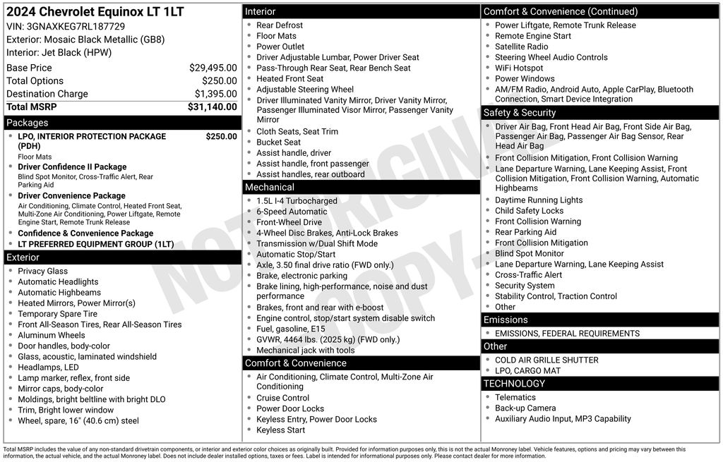 Mosaic Black Metallic 2024 Chevrolet Equinox LT 4D Sport Utility FWD 1.5L DOHC 6-Speed Automatic Electronic with Overdrive