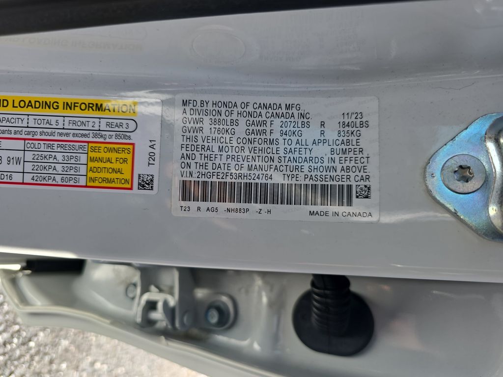 Platinum White Pearl 2024 Honda Civic Sport 4D Sedan FWD 2.0L I4 DOHC 16V i-VTEC CVT