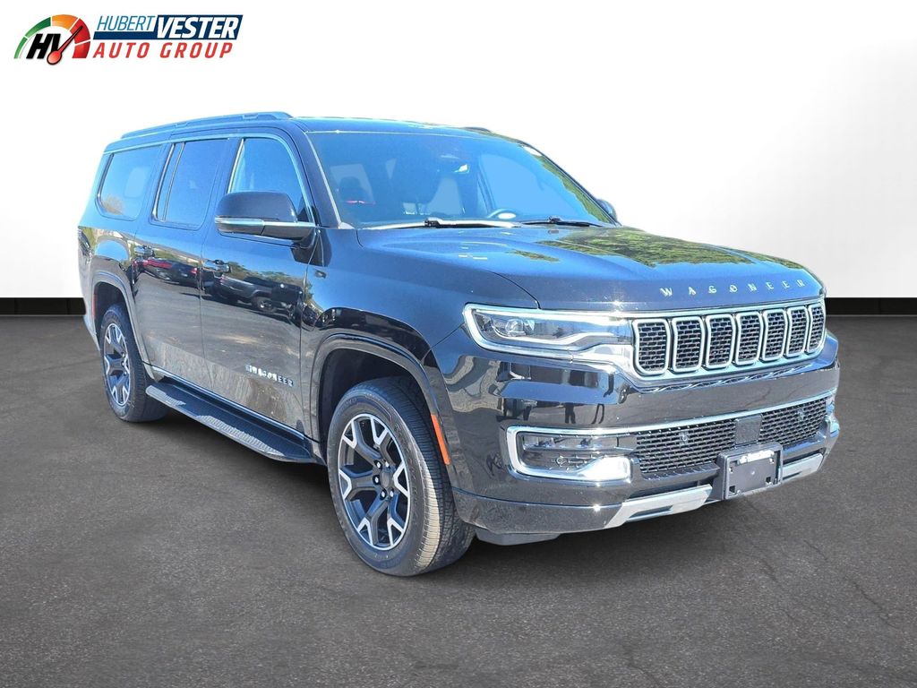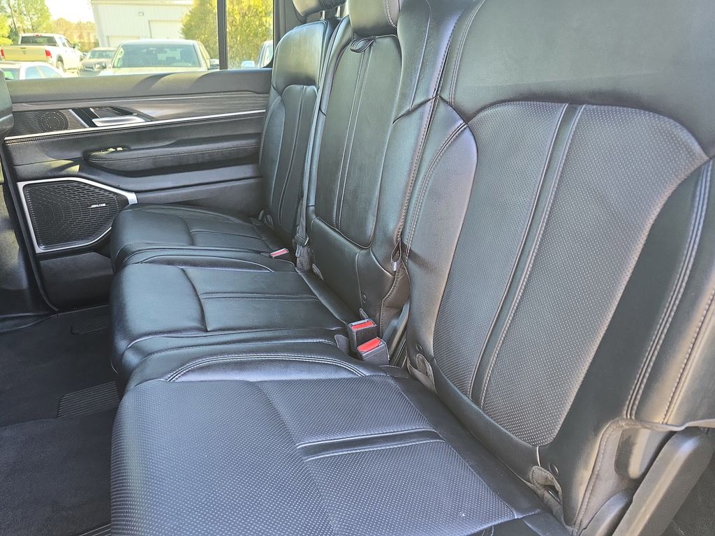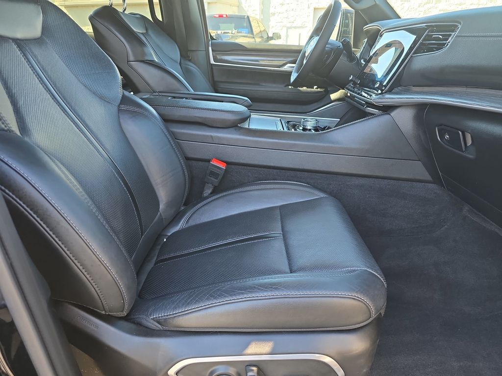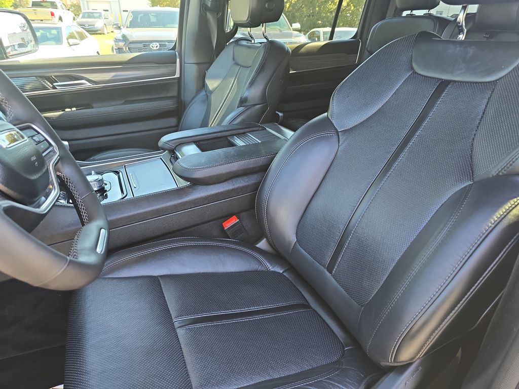 Vester Certified Pre-Owned Certified, 10 Speakers, 3.55 Rear Axle Ratio, 3rd row seats: bench, 4-Wheel Disc Brakes, 40/20/40 2nd Row Bench Power Tip/Slide, 8-Passenger Seating, ABS brakes, Adjustable pedals, Air Conditioning, Alloy wheels, AM/FM radio: SiriusXM with 360L, Anti-whiplash front head restraints, Apple CarPlay/Android Auto, Audio memory, Auto High-beam Headlights, Auto-dimming door mirrors, Auto-dimming Rear-View mirror, Auto-leveling suspension, Automatic temperature control, Brake assist, Bumpers: body-color, Compass, Delay-off headlights, Driver door bin, Driver vanity mirror, Driver's Seat Mounted Armrest, Dual front impact airbags, Dual front side impact airbags, Electronic Stability Control, Emergency communication system: Wagoneer Connect, Exterior Parking Camera Rear, Flexible Seating Group, Four wheel independent suspension, Front anti-roll bar, Front Bucket Seats, Front Center Armrest w/Storage, Front dual zone A/C, Front fog lights, Front reading lights, Full Length Floor Console, Fully automatic headlights, Garage door transmitter, Genuine wood console insert, Genuine wood dashboard insert, Genuine wood door panel insert, Heated door mirrors, Heated front seats, Heated rear seats, Heated steering wheel, Illuminated entry, Knee airbag, Leather Trimmed Bucket Seats, Low tire pressure warning, Memory seat, Navigation System, Normal Duty Suspension, Occupant sensing airbag, Outside temperature display, Overhead airbag, Overhead console, Panic alarm, Passenger door bin, Passenger seat mounted armrest, Passenger vanity mirror, Pedal memory, Power adjustable front head restraints, Power door mirrors, Power driver seat, Power Liftgate, Power passenger seat, Power steering, Power windows, Quick Order Package 25N, Radio data system, Radio: Uconnect 5 Nav w/10.1" Display, Rain sensing wipers, Rear air conditioning, Rear anti-roll bar, Rear reading lights, Rear seat center armrest, Rear window defroster, Rear window wiper, Reclining 3rd row seat, Remote keyless entry, Security system, Speed control, Speed-sensing steering, Speed-Sensitive Wipers, Split folding rear seat, Steering wheel memory, Steering wheel mounted audio controls, Tachometer, Telescoping steering wheel, Tilt steering wheel, Traction control, Trip computer, Turn signal indicator mirrors, Variably intermittent wipers, Ventilated front seats, Voltmeter, Wheels: 20" x 9.0" Aluminum (DISC).